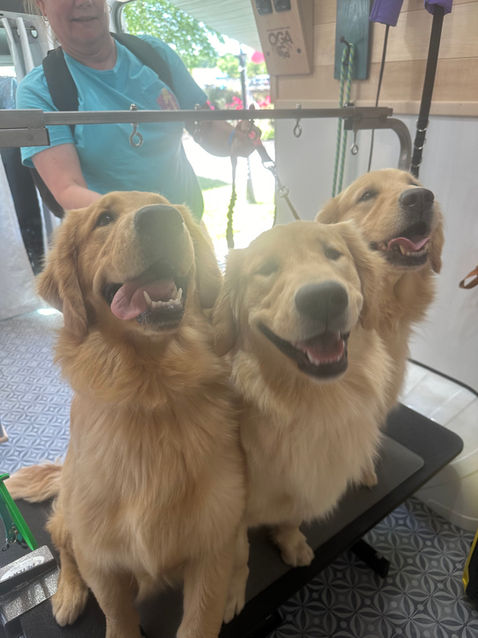 A safety belt is always used when dogs are on the groom table. Nail trimming for geriatric dogs and giant breeds can be performed on the floor if needed.